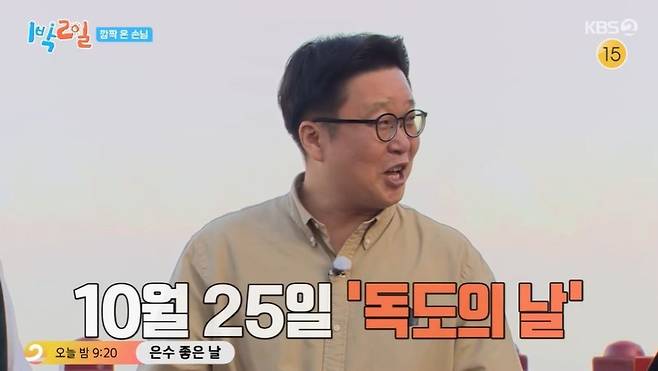 그런 가운데 서경덕 교수가 깜짝 게스트로 등장했다. 딘딘은 "교수님 만나기 전엔 한국 역사에 대해 몰랐다. 교수님한테 배우고 재미있어서 눈물도 흘렸다"라고 인연을 밝혔다. 서경덕은 10월 25일이 독도의 날이라고 밝히며 "의미를 되새기기 위해 멤버들과 방문할 예정"이라고 예고했다.