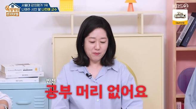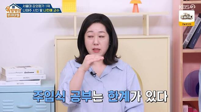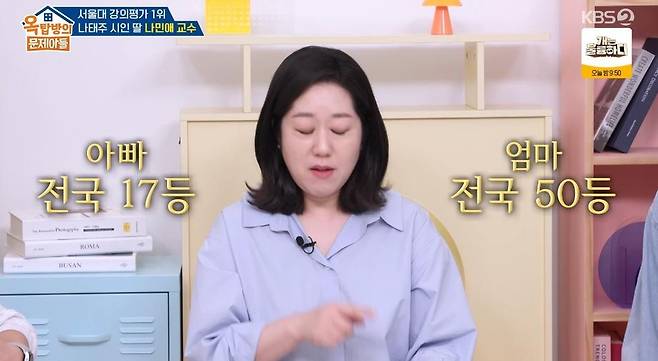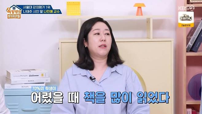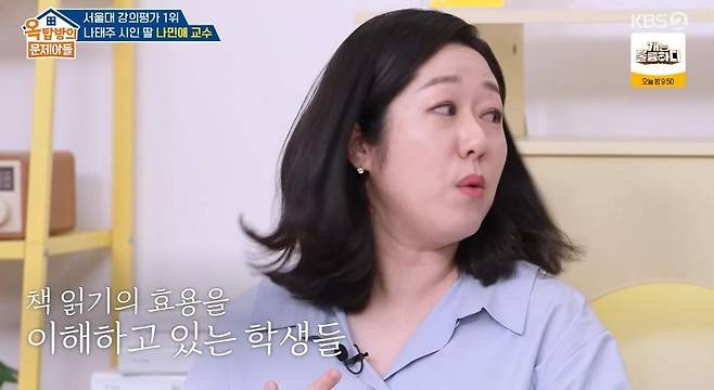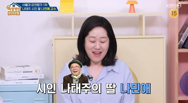 23일 방송된 KBS2 예능 프로그램 '옥탑방의 문제아들'에는 나태주 시인의 딸이자 19년째 서울대학교에서 글 쓰는 법을 가르치고 있는 나민애 교수가 출연했다.