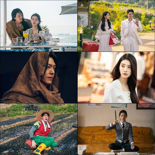 11일 넷플릭스는 지니와 가영으로 완벽 변신한 김우빈, 수지의 모습을 공개했다. 이날 공개된 로맨스 스틸에는 지니와 가영의 반전 매력이 담겨 눈길을 끈다.
