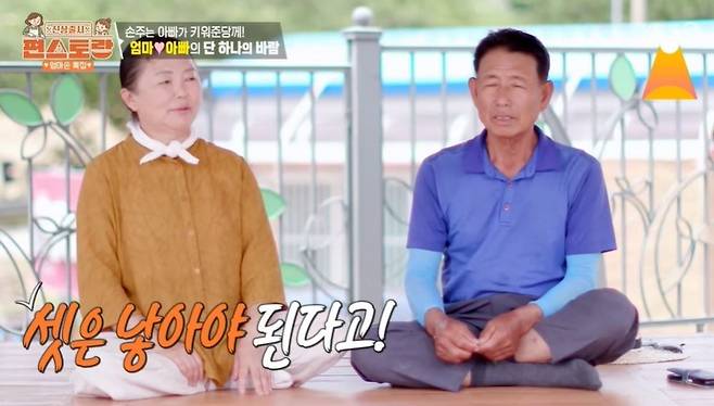 이어 엄마가 송가인을 향해 "가인아. 네 꿈도 이루고, 너 이제 할 거 다 했으니까"라고 하자, 아빠는 "아들딸 둘만 낳아라"라고 간절한 소망을 전했다. 이에 엄마는 "셋은 낳아야 한다니까"라고 한술 더 떴고, 아빠는 "내가 키워주겠다. 낳아만 와라"라고 약속했다.