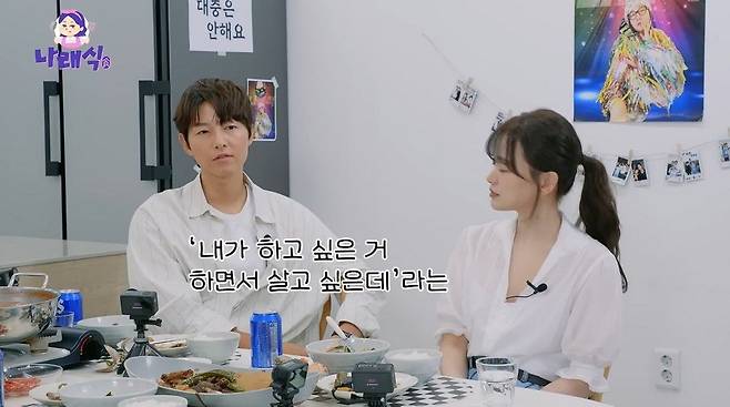 지난 10일 공개된 채널 '나래식'에는 JTBC 드마라 '마이 유스'에 출연하는 송중기와 천우희가 게스트로 출연했다. '나래식'은 코미디언 박나래가 게스트에게 직접 요리를 대접하며 식사하는 토크 프로그램이다.