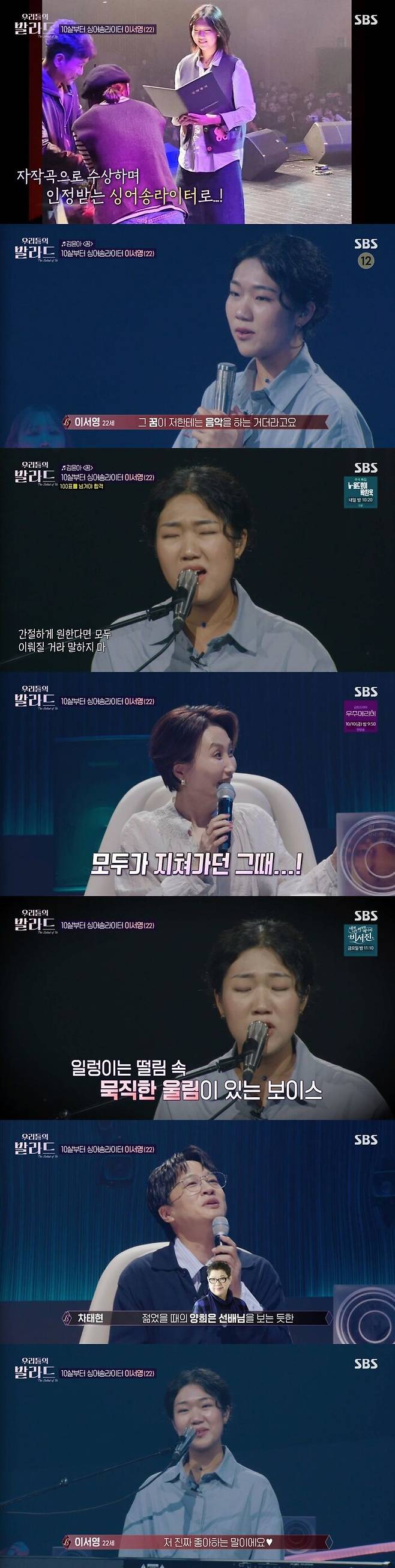 7일 방송된 SBS '우리들의 발라드'에서는 10살 때부터 싱어송라이터였던 이서영이 참가자로 등장했다.