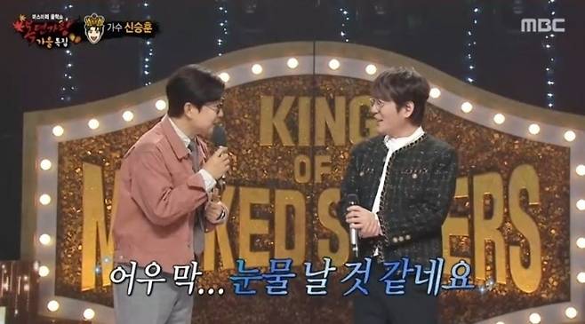 26일 저녁 MBC '복면가왕' 가을 특집에는 '별에서 온 왕자'로 변신한 신승훈이 오프닝 무대에 등장, 변진섭의 '그대 내게 다시'를 불렀다. MC 김성주는 신승훈을 보자 "복면가왕 10주년에 10년의 공백을 깨고 나와주셨다"며 "눈물이 날 것 같다"고 벅찬 감정을 전했다.