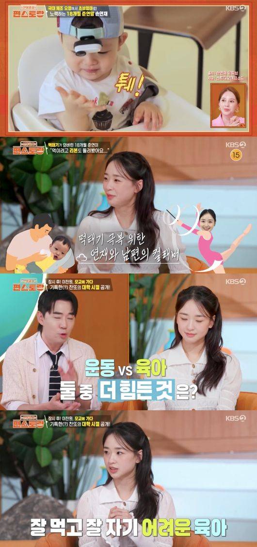 그런가 하면, 손연재는 요즘 ‘먹태기’에 빠진 아들을 걱정하기도 했다. 체조선수 시절 평생 식단과리를 해왔던 바. 그는 “은퇴 전까지 안 먹어본 식재료도 엄청 많고 음식에 대한 경험이 많이 없다. 편식을 너무 많이 한다”라고 털어놨다.