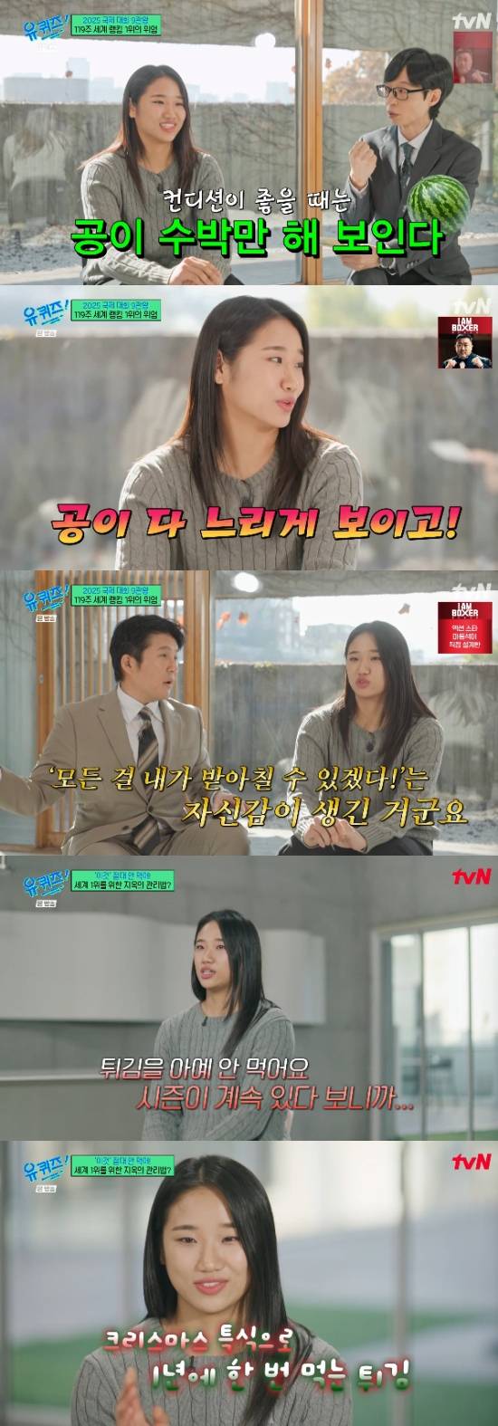 (엑스포츠뉴스 오수정 기자) '유퀴즈'에서 안세영이 철저하게 자기 관리를 하는 모습을 보였다.