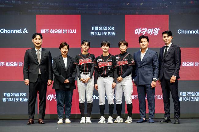25일 오후 서울 구로구 더세인트 신도림 그랜드볼룸홀에서 채널A 신규 예능 ‘야구여왕’ 제작발표회가 진행됐다. 오늘(25일) 첫 방송되는 ‘야구여왕’은 각기 다른 스포츠 종목의 ‘레전드 여성 선출’들이 ‘야구’라는 낯선 무대에 도전장을 내미는 스포츠 버라이어티 프로그램이다.