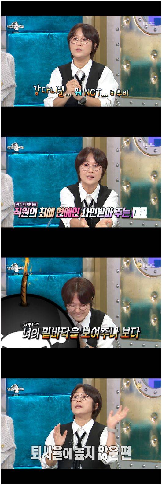 1일 방영된 MBC 예능 ‘라디오스타’에서는 일명 송은이 사단, 배우 봉태규, 옥자연, 개그우먼 황정혜, 박소라, 송은이가 등장했다.