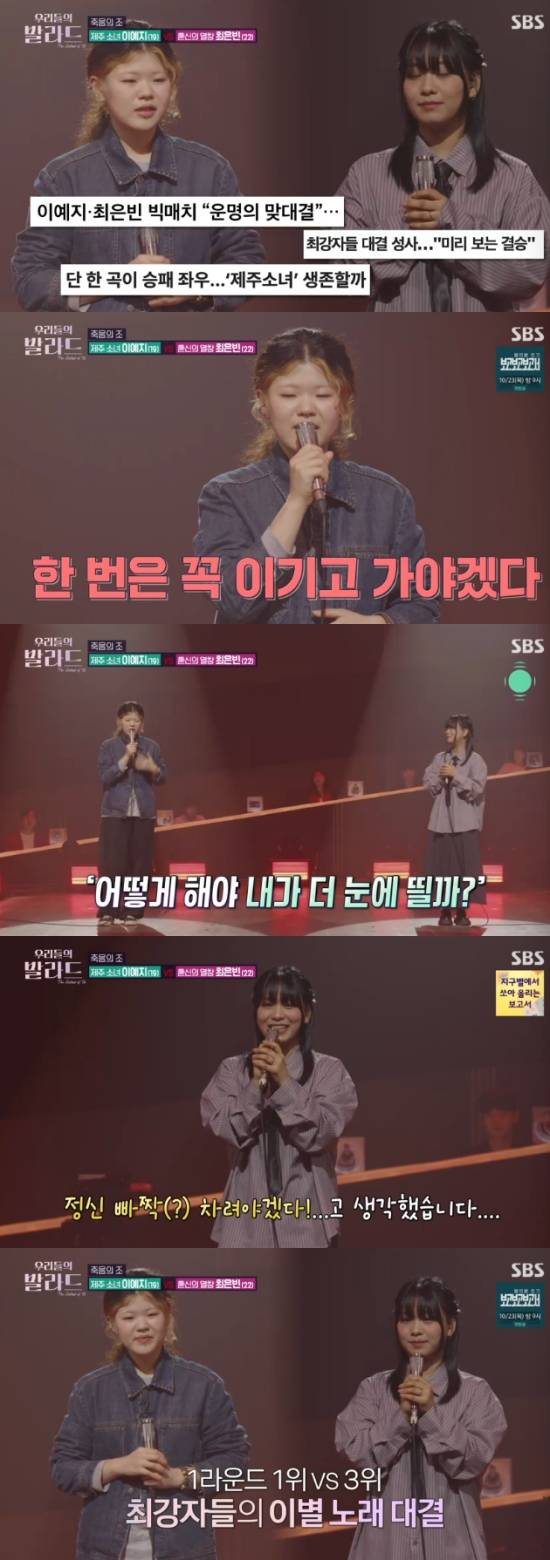 21일 방송된 SBS 예능 프로그램 '우리들의 발라드'에서는 3라운드 진출을 위한 '1대1 데스매치'를 펼치는 참가자들의 모습이 그려졌다.