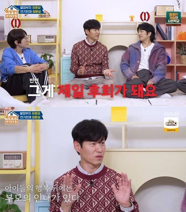 [스포츠투데이 송오정 기자] 배우 유준상이 아내와 합의 하에 자녀에게 공부를 강요하지 않았지만, 지금은 후회된다고 고백했다.
