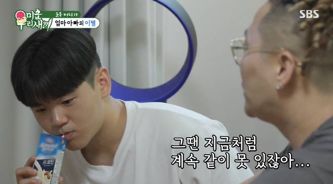 윤민수는 주말에 미국으로 돌아간다는 아들에게 "너 다음에 한국 올 때는 어떻게 될지 모른다. 아빠랑 엄마랑 그때 쯤이면 따로 살 수도 있다. 그땐 지금처럼 계속 같이 못 있는다. 네가 엄마네 가 있을지 모른다"고 운을 뗐다. 이에 윤후는 "이런 얘기가 처음이라 많이 당황스럽다"면서도 "생각보다 신경 쓰인다"고 털어놨다.