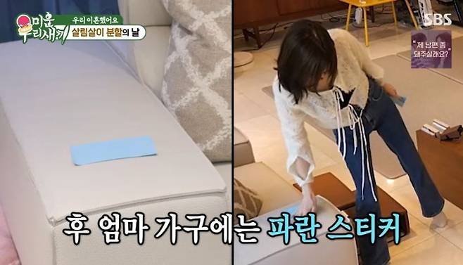 윤민수가 소파를 가져간다고 하자 김민지는 "반려견 써야 한다"라며 두고 가라고 했다. 대신 자신이 새 소파를 선물해 준다는 것. 이를 보던 신동엽은 "할리우드인데요?"라고 놀랐다. 윤민수는 거실의 공용 가구를 가리키며 "여기선 뭘 가져가야 하냐"라고 고민에 빠졌다.
