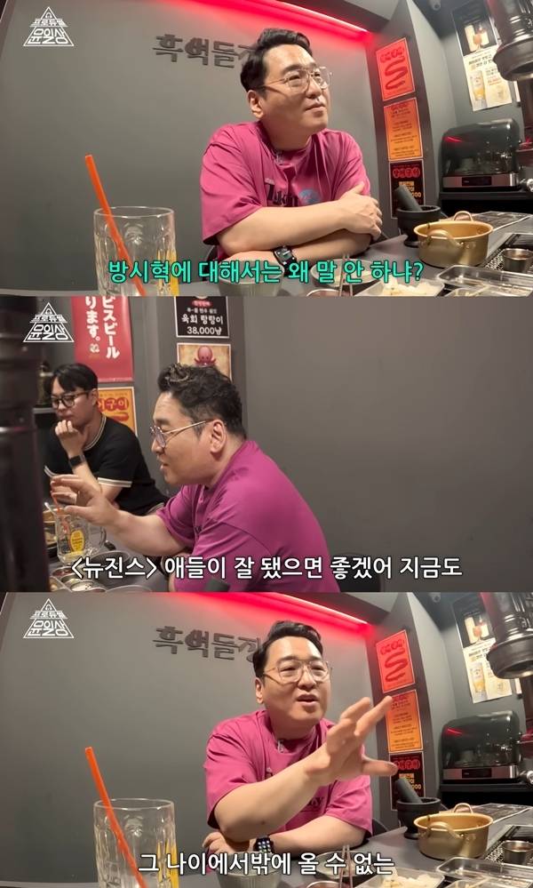 윤일상은 “나는 뉴진스가 잘됐으면 좋겠다. 지금도 이렇게 시간이 가는 게 아깝다. 팀 자체가 그 나이에 할 수 있는 청량함이 있다. ‘슈퍼 샤이’ 그 목소리와 율동은 시간이 지나면 나오지 않는다”며 “어른들 때문에 놓치고 있는 이 시간이 안타까운 건데 방시혁 얘기가 왜 나오냐”고 말했다..