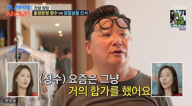 27일 방송된 TV CHOSUN 예능 프로그램 '조선의 사랑꾼'에서 결혼을 앞두고 합가를 시작한 윤정수, 원진서의 모습이 그려졌다.