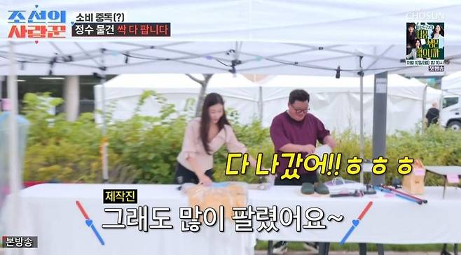저렴한 가격 덕분인지 윤정수의 물건들은 순식간에 팔렸다. 물건을 애지중지하는 윤정수는 물건이 모두 판매될까 오히려 걱정하는 모습으로 웃음을 자아냈다.