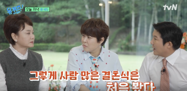 영상에서 이경실은 MC 조세호에게 "그렇게 사람 많은 결혼식은 처음 봤다"라고 운을 뗀 후 "사람이 그렇게 많이 필요하진 않아 살면서"라며 "단체 사진을 찍는데 다섯 파트더라"고 수많은 하객들로 가득찼던 결혼식을 회상했다.