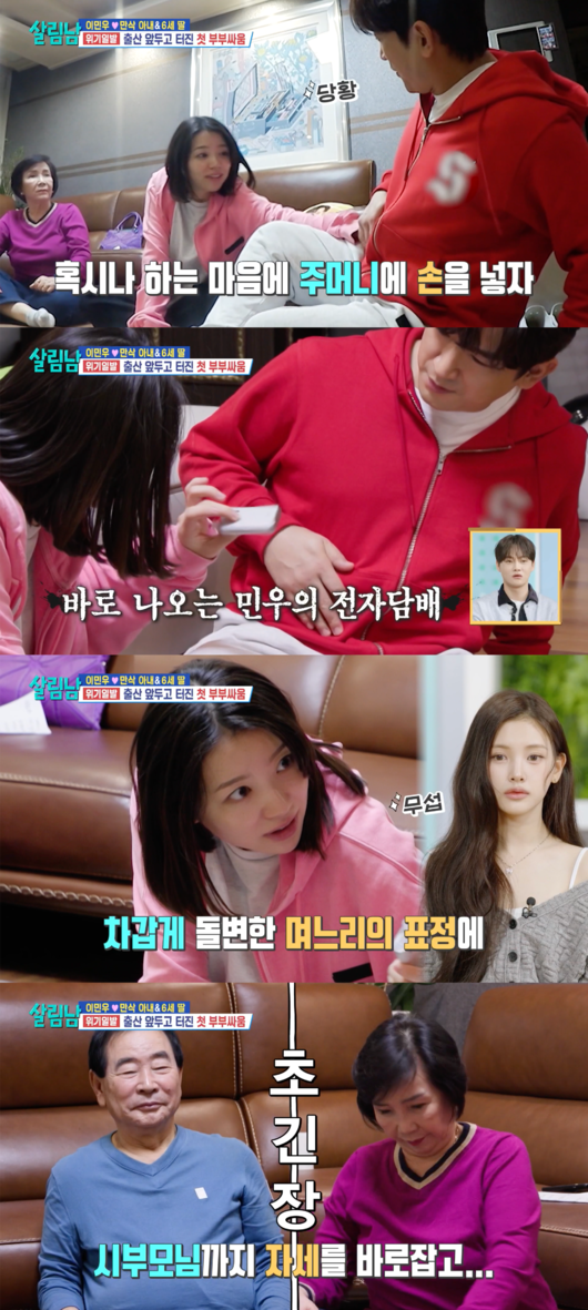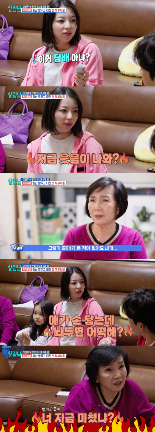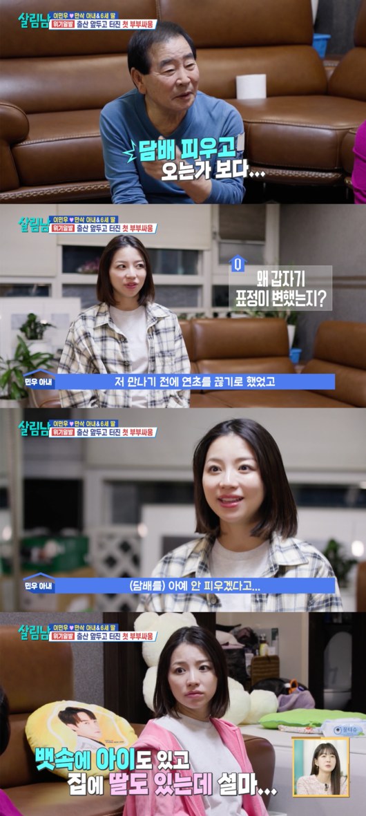 [OSEN=김채연 기자] 그룹 신화 출신 가수 이민우가 만삭 아내와 약속을 어기고 흡연을 했다는 사실이 발각되며 첫 부부싸움이 벌어졌다.