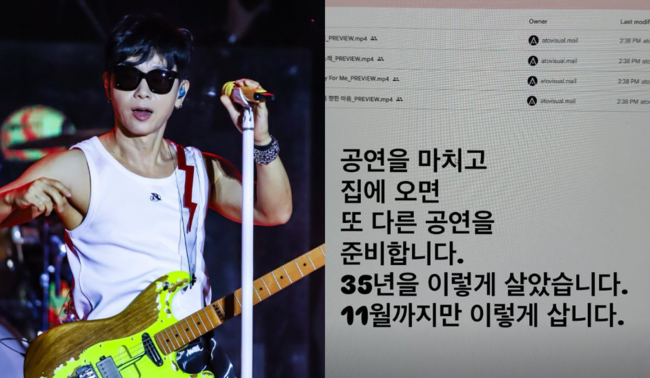 이승환은 14일 새벽 자신의 소셜 계정에 "공연을 마치고 집에 오면 또 다른 공연을 준비합니다. 35년을 이렇게 살았습니다. 11월까지만 이렇게 삽니다"라고 글을 올렸다.