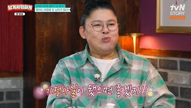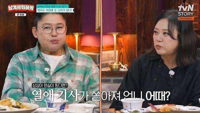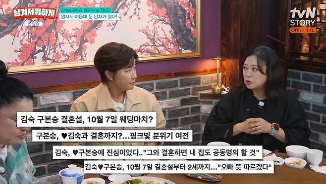 박세리는 김숙 이상형에 대해 묻다가 "구본승? 거기까진 기사로 봤다"라고 했고, 김숙은 구본승과 10월 7일에 결혼한다는 기사를 언급하며 "난 결혼 날짜까지 정해졌더라. 말도 안 되지"라고 해명했다. 이어 김숙은 이영자에게 "언니도 결혼 기사 나지 않았냐"라고 물었고, 이영자는 "난 좋았어"라고 수줍게 답하면서 "그쪽 매니지먼트에서 항의해서 얼른 내리더라"라고 너스레를 떨었다.