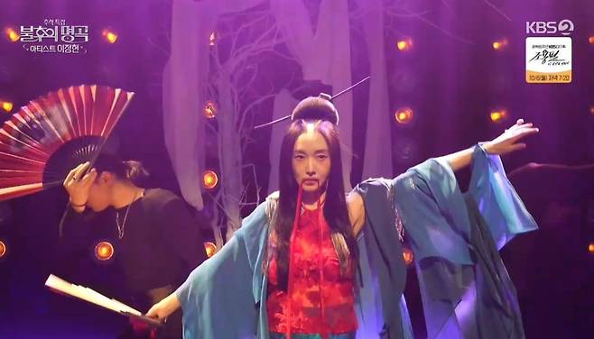이후 이정현은 10년 만에 무대에 올라 화려한 귀환을 알렸다. 이정현은 한국무용수 김시원과 함께 '와' 무대를 선보였다. 이정현은 마치 데뷔 때를 보는 듯한 모습으로 카리스마 있게 무대를 사로잡았다. 이정현의 열정이 돋보인 무대였다.