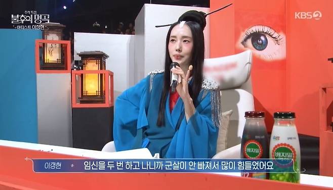 또한 이정현은 예전보다 살이 빠진 것 같단 말에 "임신을 두 번 하고 나니까 군살이 안 빠져서 많이 힘들었다. '불후' 무대를 해야 하는데, 무대복이 안 맞아서 두 달간 운동해서 살을 엄청 뺐다. 제가 라면 진짜 좋아하는데, 라면을 두 달간 끊었다"라고 털어놓았다.