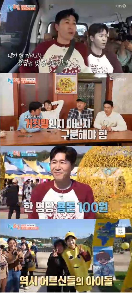 23일 방송된 KBS 2TV '1박 2일 시즌4'에서는 김종민, 문세윤, 조세호, 이준, 딘딘, 유선호가 전남 고흥으로 떠나는 모습이 전파를 탔다.