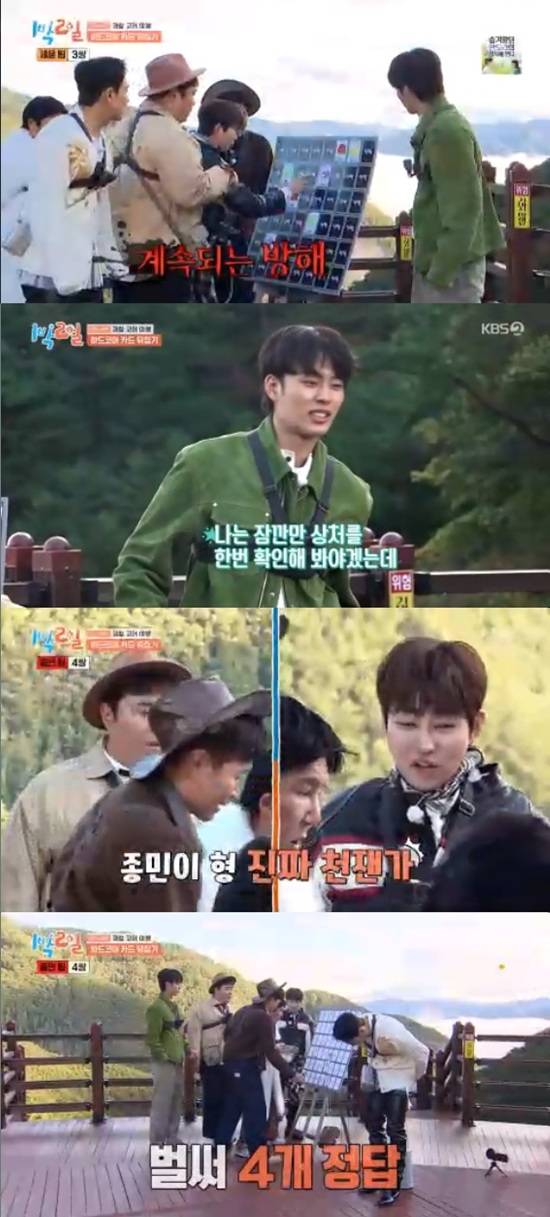 9일 방송된 KBS 2TV '1박 2일 시즌4'에서는 김종민, 문세윤, 조세호, 이준, 딘딘, 유선호의 충북 단양, 제천 여행기가 전파를 탔다.