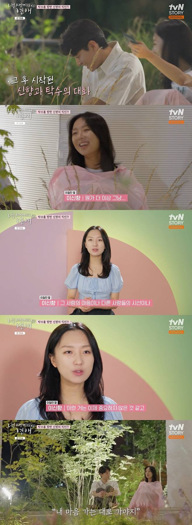 이신향은 "그 사람의 마음이나 다른 사람들의 시선이나 이런 거는 이제 중요하지 않은 것 같다. '내 마음 가는 대로 가야지!' 더 늦기 전에 확실하게 이야기 해주고 싶다"며 이탁수를 향한 직진을 예고했다.