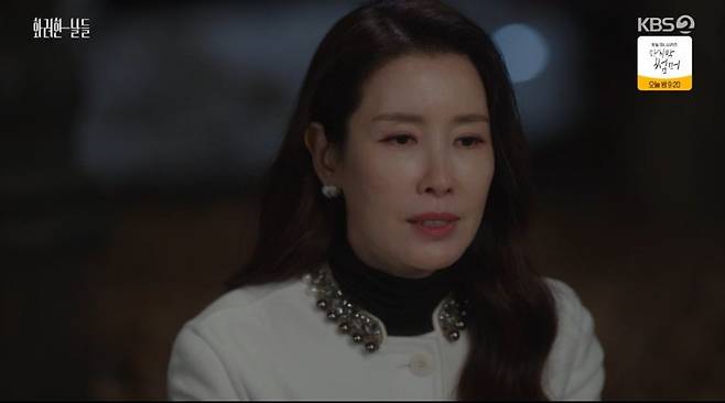 23일 KBS 2TV '화려한 날들'에선 은오(정인선 분)를 희생시키고자 그의 양동생 강오(양혁 분)에게 거액을 건네는 성희(이태란 분)의 모습이 그려졌다.