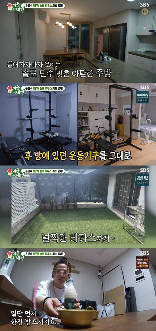 무엇보다 이날 윤민수의 뉴 하우스가 공개돼 눈길을 끌었다. 아담한 부엌에는 이전 집에서 가져온 익숙한 가전제품들이 놓여있었고, 1층에는 아들 후를 위한 운동 공간도 마련되어 있었다.