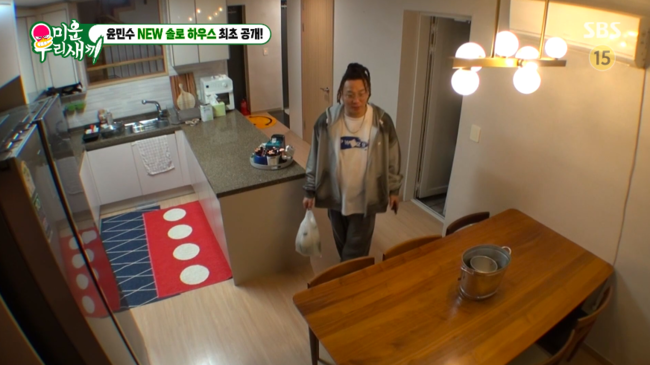 2층에는 거실공간과 윤민수 방이 있었다. 솔로 민수의 새로운 침실 안에는 작은 드레스룸도 있었고, 이어 3층으로 올라간 윤민수에 서장훈은 “운동 되겠다”라고 말했다.