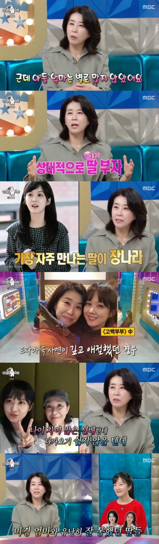 그 중에도 애정가는 딸을 묻자 장나라와 김태희를 꼽았다. 김미경은 "촬영이 끝나면 만나기 힘든데 장나라, 김태희와는 지금까지도 잘 지내고 있다. 작품으로 만나서 개인적인 친분으로 발전을 했다"고 말했다.