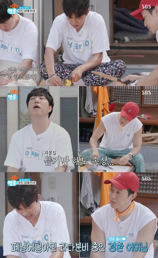 궤도는 ‘과친남‘답게 노래 가사를 과학으로 분석하며 “이 노래는 쉽게 말하면 도파민, 노르에피네프린, 페닐에틸아민이 나오는 상태다"라고 설명했다. 곰곰이 생각하던 허경환은 "통영에 한 분이 지금 그 상태"라고 떠올리며 "저희 어머니가 영웅이의 소식을 기다리고 있다"고 넌지히 이야기를 건넸다.