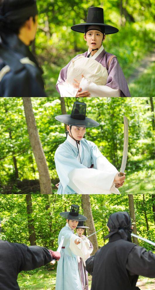 공개된 사진 속 이헌과 연지영은 깊은 산길 속 검은 복면을 한 자객들과 마주하고 있는 절체절명의 순간에 놓여있다. 자신들을 옥죄어오는 서슬 퍼런 칼날에 잔뜩 겁을 먹은 연지영과 이에 맞서 비장하게 검을 빼든 이헌의 모습이 더욱 긴장감을 고조시킨다.