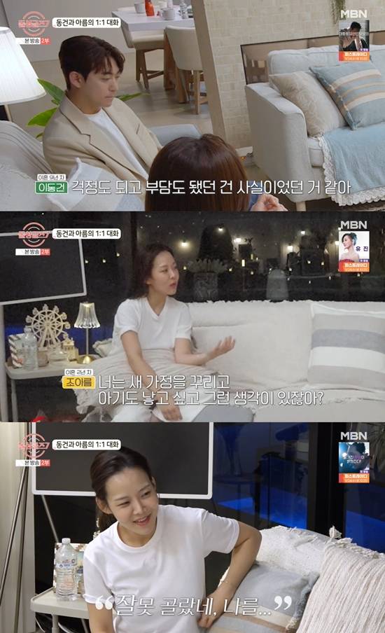 동건은 "맞다. 내 기준에서는 이게 제일 중요한 부분이고 마지막 문제일 거라 생각했다. 어제는 내가 정리가 안 됐는데 아름이를 불러서 얘기하는 건 아닌 것 같았다"고 명은의 말에 반응했다.