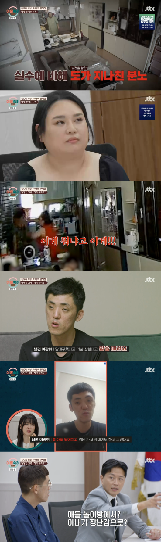 이에 남편은 폭행의 이유가 주로 "말대꾸하고 기분 상한다"는 아내의 감정 때문이었다고 설명했다. 특히 남편은 "놀이방에서 장난감으로 맞아 이마가 찢어지기도 했다"고 덧붙이며 심각한 상해 사실까지 공개해 충격을 더했다.