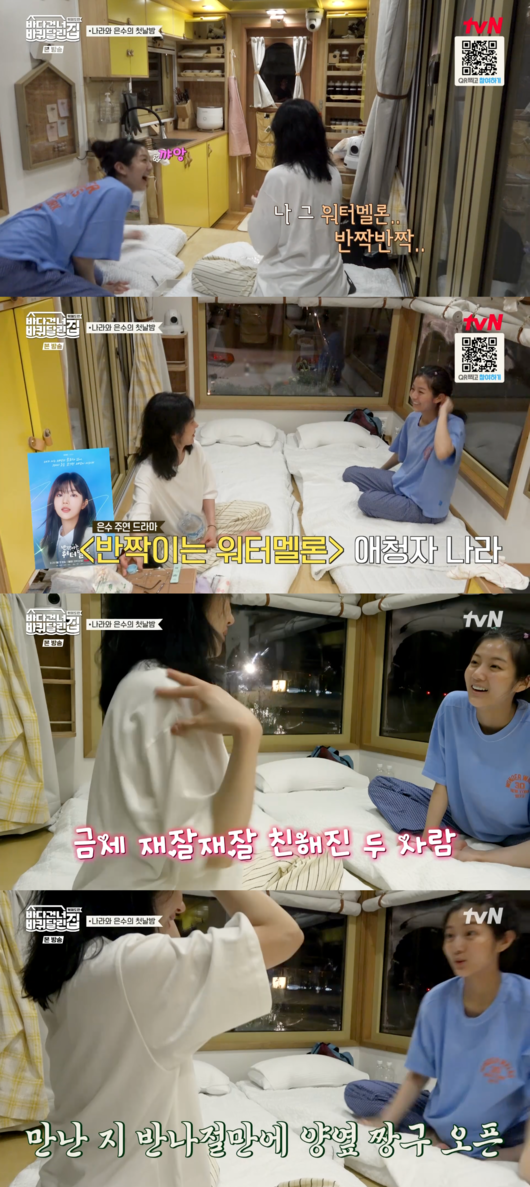 식사를 마친 후, 장나라는 신은수와 함께 잠자리에 들 준비를 하며 편안한 수다를 나눴다. 장나라는 신은수에게 출연작인 드라마 '반짝이는 워터멜론'을 재미있게 봤다고 말하며 친근한 모습을 보였다.