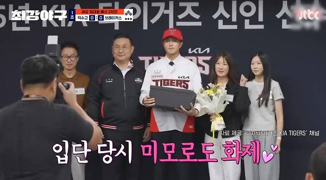 이날 기아 타이거즈의 지명을 받은 박종혁이 톱타자로 타석에 선 가운데 브레이커스 선수들은 박종혁의 수려한 미모에 주목했다.