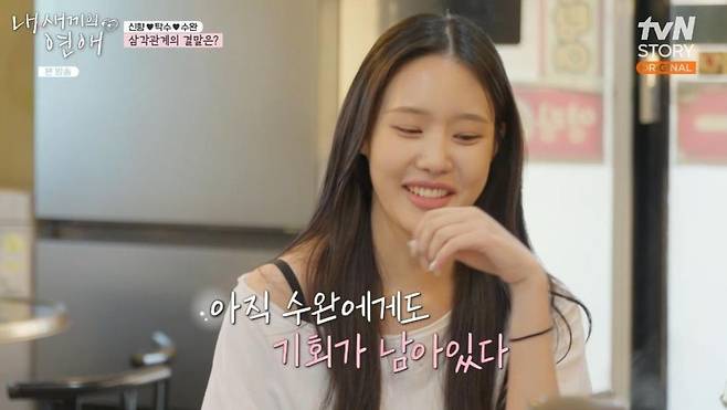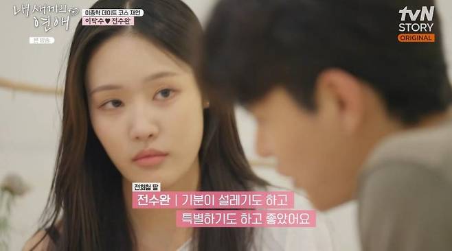 전수완은 "내가 다른 사람과 데이트를 하게 되면 오빠랑 밤에 얘기를 하려고 했다. 그런데 데이트를 해서 좋다"라고 속내를 전했다. 이에 탁수 역시 "나도"라고 답했다.