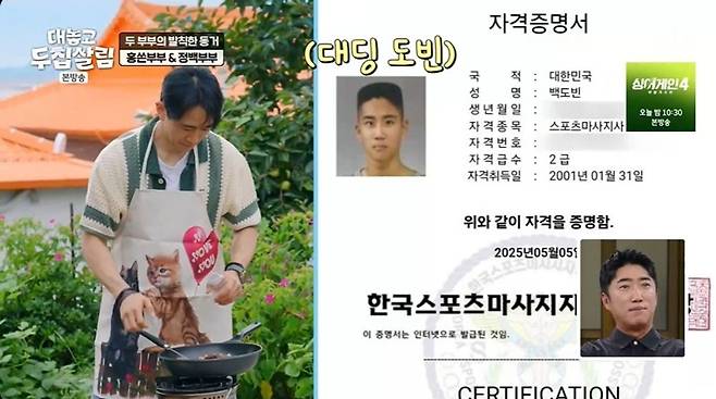 또한 각종 운동 기구, 공기압 마사지기, 영양제, 마사지 오일 등이 나왔고, 장윤정은 "나와 똑같은 제품 쓴다"라며 웃었다. 도경완은 "저희 집에 몸만 들어오시면 될 것 같다. 용품 다 있다"라고 말하기도. 정시아는 백도빈이 마사지 자격증도 보유하고 있다고 자랑했다.