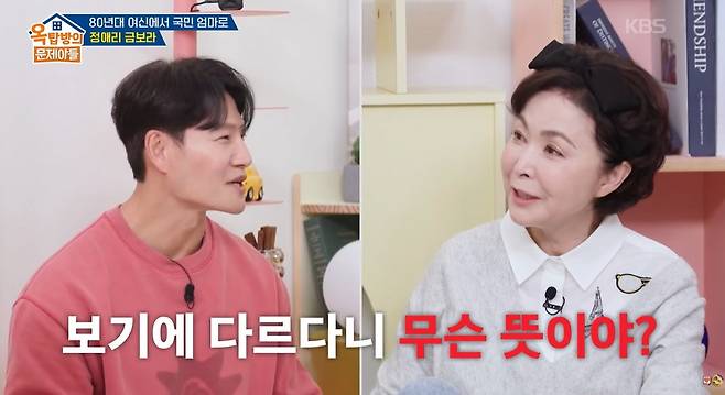 [TV리포트=김해슬 기자] 배우 정애리가 금보라의 첫인상에 대해 느낀 점을 토로했다. 지난 6일 방송된 KBS2 '옥탑방의 문제아들 시즌2'(이하 '옥문아')에는 정애리, 금보라가 출연해 데뷔 40여 년 차다운 노련한 입담을 펼쳤다.