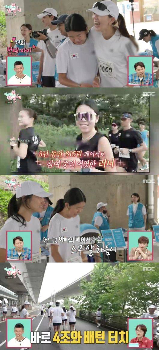 션은 딸을 4조 페이서로 배치했다며 “에너지가 필요할 때”라고 설명했다. 션과 딸이 같이 뛰는 장면에 홍현희는 “아빠 힘나겠다”라며 감동받은 모습을 보였다.