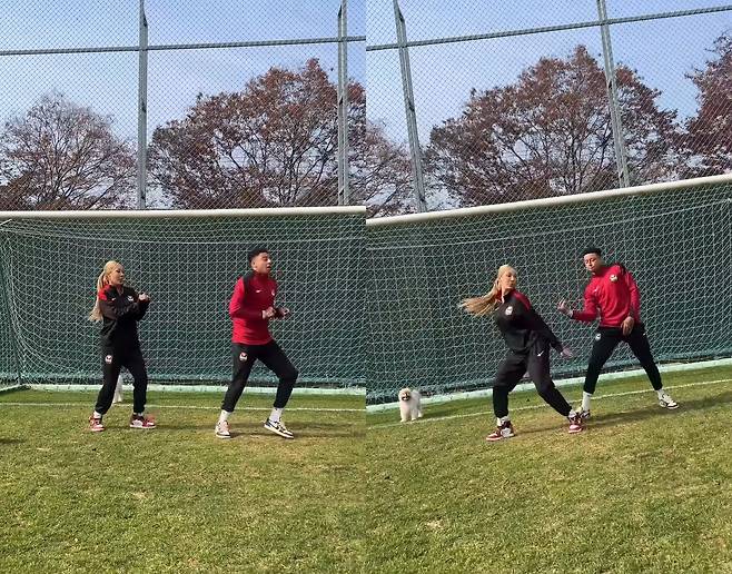 영상 속 두 사람은 축구장을 배경으로 함께 댄스 대결을 펼치다 합동 퍼포먼스를 이어나갔다. 제시 린가드가 댄서 못지않게 수준급의 그루브를 선보인 가운데 이들 사이에서 갈 길을 잃은 제시의 반려견도 시선을 강탈했다.
