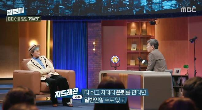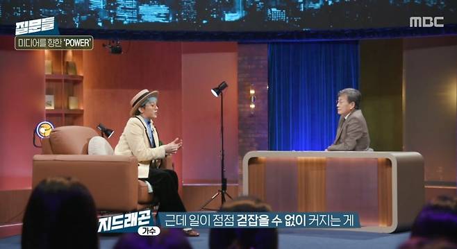 5일 MBC '손석희의 질문들'에선 지드래곤이 게스트로 출연해 24년 가수 인생을 돌아봤다.