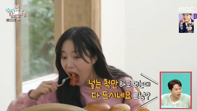 이후 쯔양은 화보를 촬영하며 음식을 먹었다. 양세형이 "넣는 척만 하면 되는데, 다 드시네요?"라고 하자 쯔양은 "보통 뱉어요?"라며 충격을 받았다. 양세형은 "진짜 먹는 사람이 우리나라에서 이영자 선배님 한 분인데, 지금 두 번째 보는 거다"라고 했다.