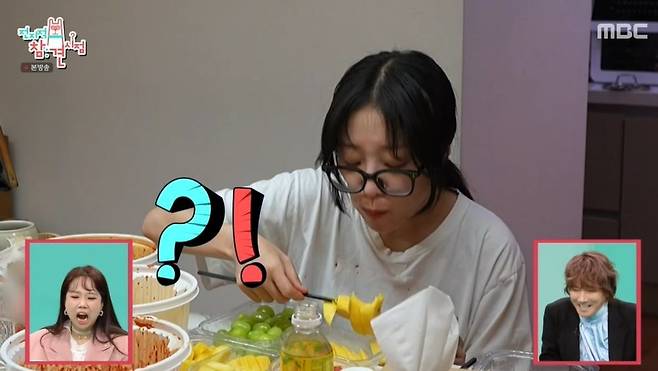 떡볶이를 먹는 사이 6종의 과일이 도착했다. 수박을 먹어본 쯔양은 바로 재주문했다. 양세형은 "쯔양 동네는 지역 경제 활성화에 좋겠다"라고 했고, 김장훈은 "엥겔지수가 한 90 정도 되겠다"라고 놀랐다. 쯔양은 "너무 많이 먹어서 힘든 적 없냐"란 질문에 "혈당 수치를 재는 (콘텐츠를) 했는데, 2시간 동안 치킨을 먹었는데 거의 안 올라가더라"라고 밝혔다. 계속 먹는 쯔양을 보며 김장훈은 결국 "도대체 몇 시간을 먹는 거냐"라고 말해 웃음을 안겼다.