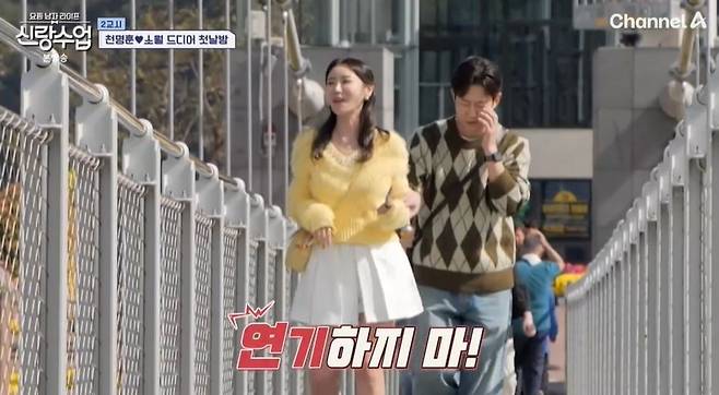 천명훈은 출렁다리를 건너며 무서워했지만, 소월은 성큼성큼 걸어갔다. 천명훈은 멀미가 난다며 손을 잡아달라고 은근슬쩍 팔을 잡았고, 소월은 "연기하지 마"라며 받아주지 않았다. 천명훈은 "결혼하시나요?"란 안전요원의 질문에 "365일 중 한 날을 잡는 게 쉽지 않다"라고 너스레를 떨었다. 꽃밭에 간 천명훈은 "소월이 어디 있어?"라며 찾는 척 연기했고, "옷을 그렇게 입어서 헷갈려"라고 말하기도.