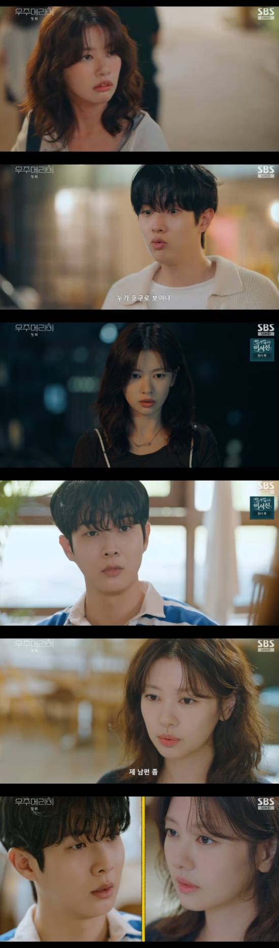 지난 10일 방송된 SBS 새 금토드라마 '우주메리미' 1회에서는 파혼한 약혼자와 같은 이름을 가진 김우주(최우식 분)에게 첫 만남 후 가짜 남편을 제안하는 유메리(정소민)의 모습이 그려졌다.