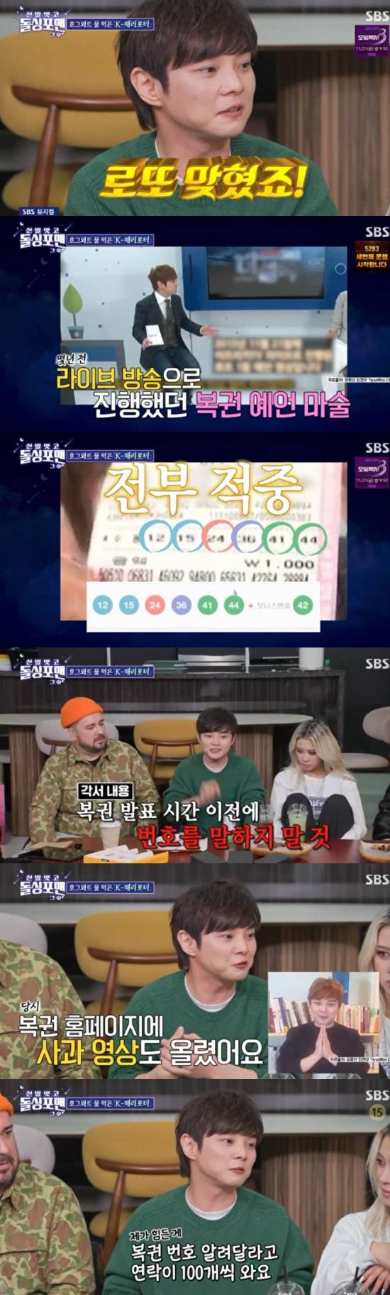 이어 "로또 1등 번호를 2번 맞혔었다. 저는 마술사니까 큰 문제가 안 될거라고 생각했는데 그 때 로또 회사에 전화가 많이와서 전화가 마비가 됐었다더라. 그래서 고소를 한다고도 했었다"고 말했다.