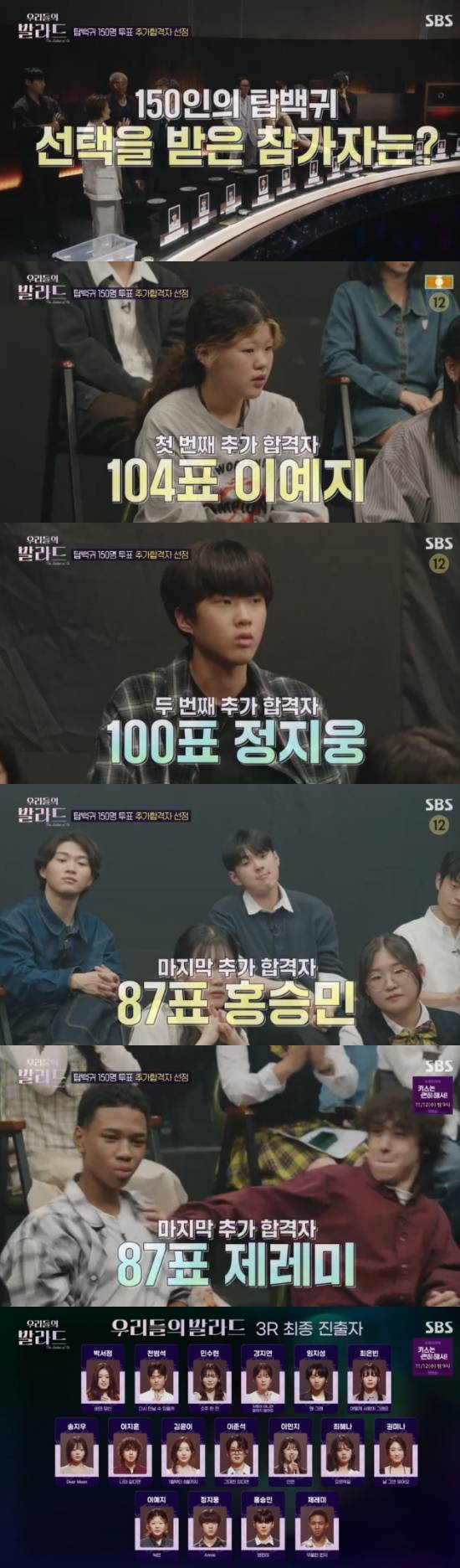 (엑스포츠뉴스 오수정 기자) '우리들의 발라드'에서 충격적 탈락으로 모두를 놀라게 했던 이예지가 투표로 추가 합격을 했다.