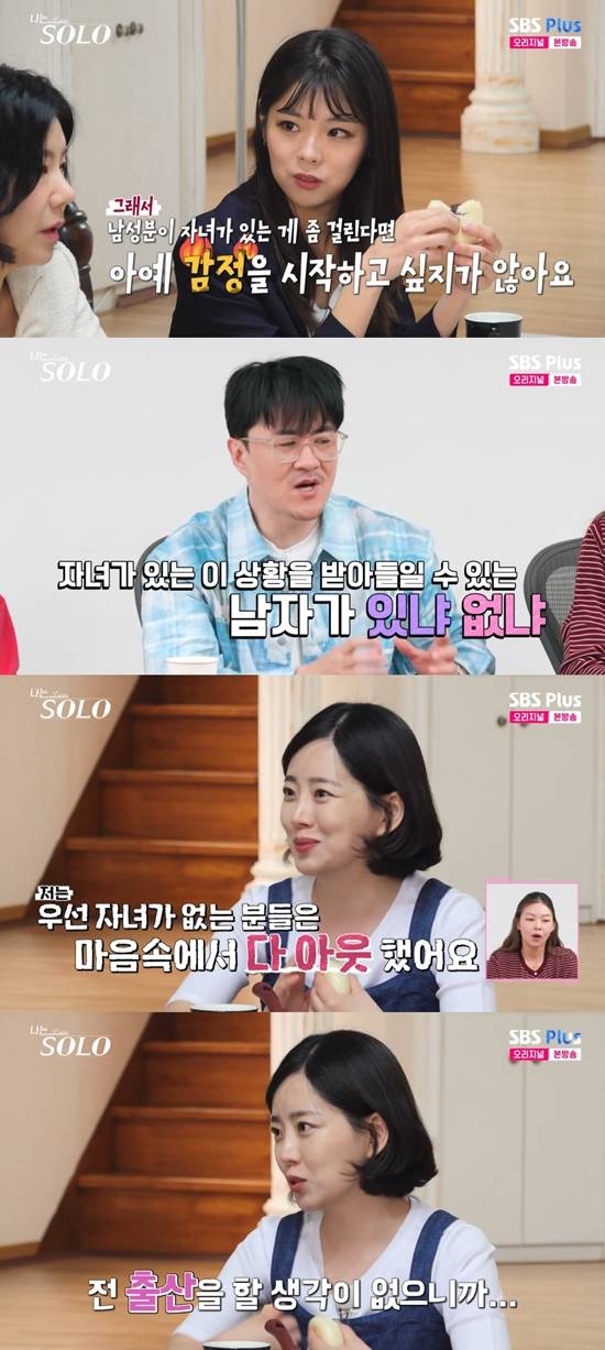 자기소개가 끝나고 여자 출연자들만 모이자, 옥순은 "나는 남성분이 '자녀가 있는 게 걸린다' 그러면 아예 감정을 시작하고 싶지 않다"라고 고백했다.